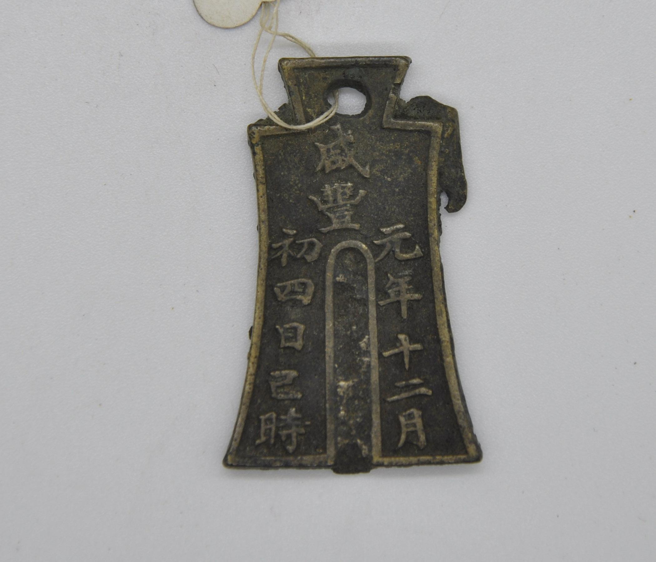 清咸丰元年圣庙上梁钱清,长4.78cm,宽2.953cm,厚0.392cm