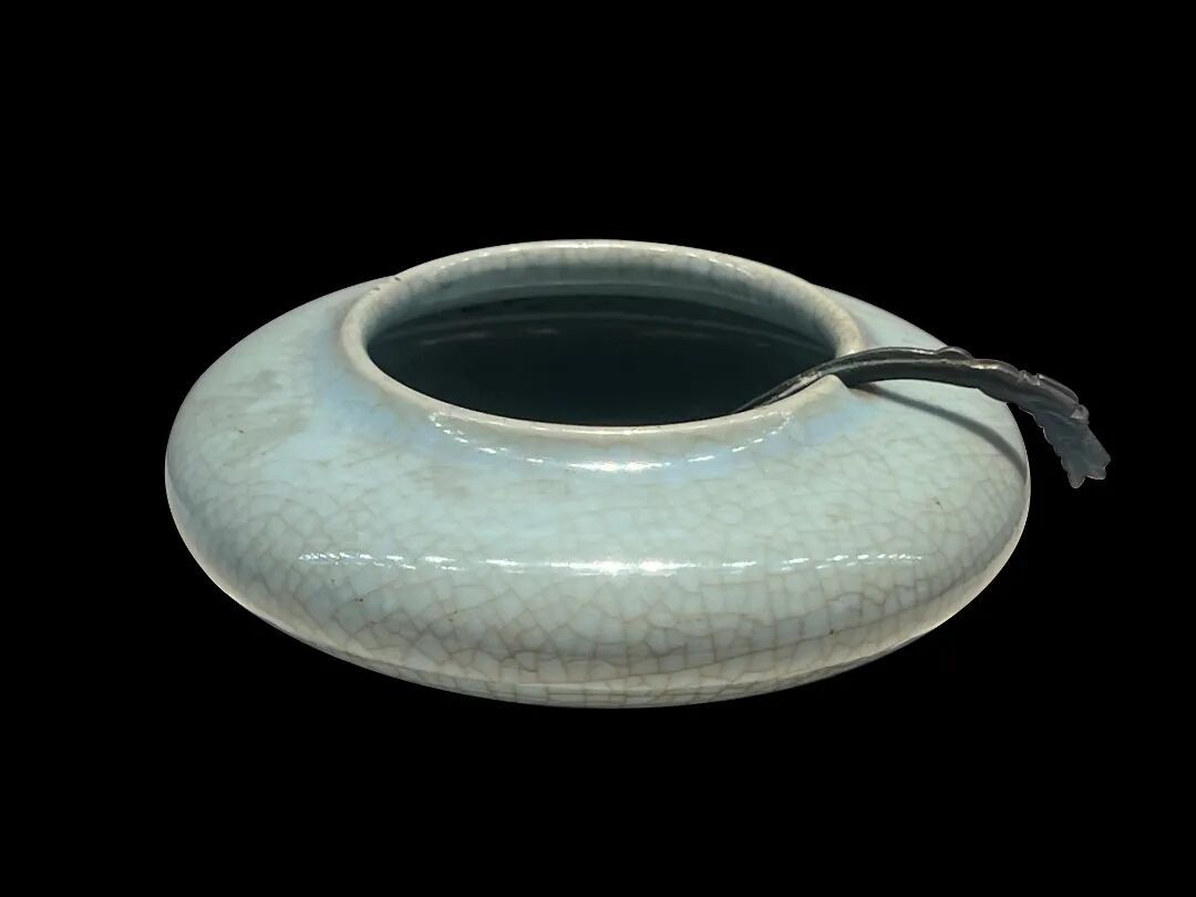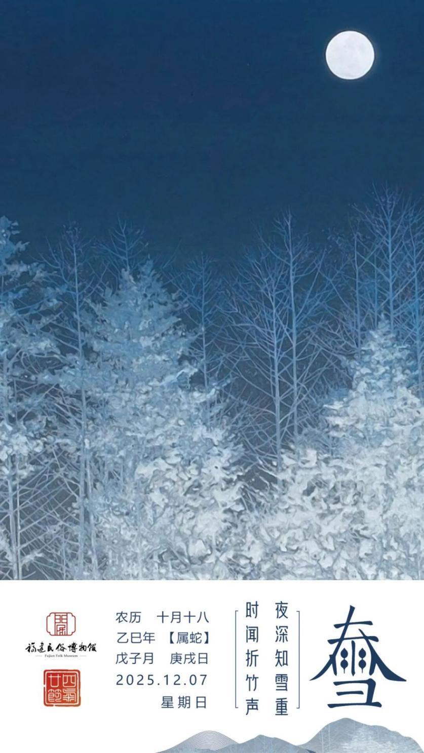清代浅蓝釉水盂 大雪是二十四节气中第21个节气,也是冬季的第三个节气,通常在每年公历12月6-8日,标志着仲冬时节开始。《月令七十二候集解》有言:“大雪,十一月节,大者,盛也,至此而雪盛也。”此时太阳到达黄经255度,北半球白昼最短,寒气最重,水汽凝而为雪,故名“大雪”。 当屋外寒云压檐,围炉呵笔、研墨临帖,是文人最妥帖的冬日闲趣。福建民俗博物馆馆藏的这件清代浅蓝釉水盂,正是古人案头“藏冬”的雅物,成了文房里的“冬日雅伴”。它是清乾隆时期的文房器物,形制小巧秀雅,圆口微敛,丰肩弧腹、收于圈足,线条圆润柔和,周身布满冰裂纹片,釉色润洁、胎质细腻,尽显雅致格调。底足以青花书“大清乾隆年制”六字篆书款,恰是宫廷文房的精致印戳。这方水盂,是大雪时节文人心头藏着的“暖玉”,既承续宋瓷的古雅余韵,也盛着冬日研墨时,笔尖落纸的烟火与诗意。 |