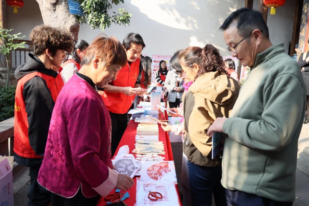 本次活动还设置了剪纸、拓印等传统文化体验环节,吸引了大量参观者驻足参与。在剪纸老师的指导下,一幅幅融入法治标语的红色剪纸栩栩如生;在拓印体验中,参与者亲手操作,使用传统工具将寓意吉祥的“福”字和活泼可爱的“年年有鱼”图案拓印于宣纸之上。这两种富有传统文化趣味的体验,让“学习宣传贯彻习近平法治思想,推动宪法深入人心”的活动主题和法治理念深入人心。