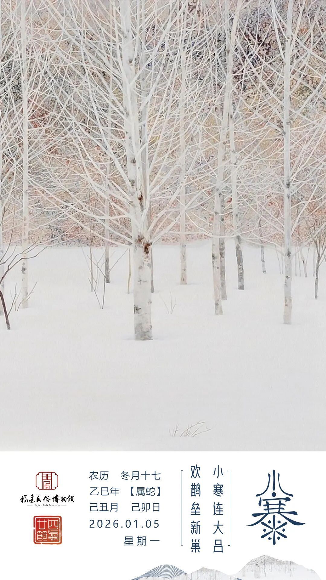 民俗文物 小寒,是二十四节气中的第23个节气,冬季的第5个节气,干支历子月的结束与丑月的起始。斗指癸;太阳黄经为285°;于每年公历1月5-7日交节,标志着一年中最寒冷的日子正式来临。在这个时节,太阳直射点逐渐北移,北半球的白昼开始慢慢变长。