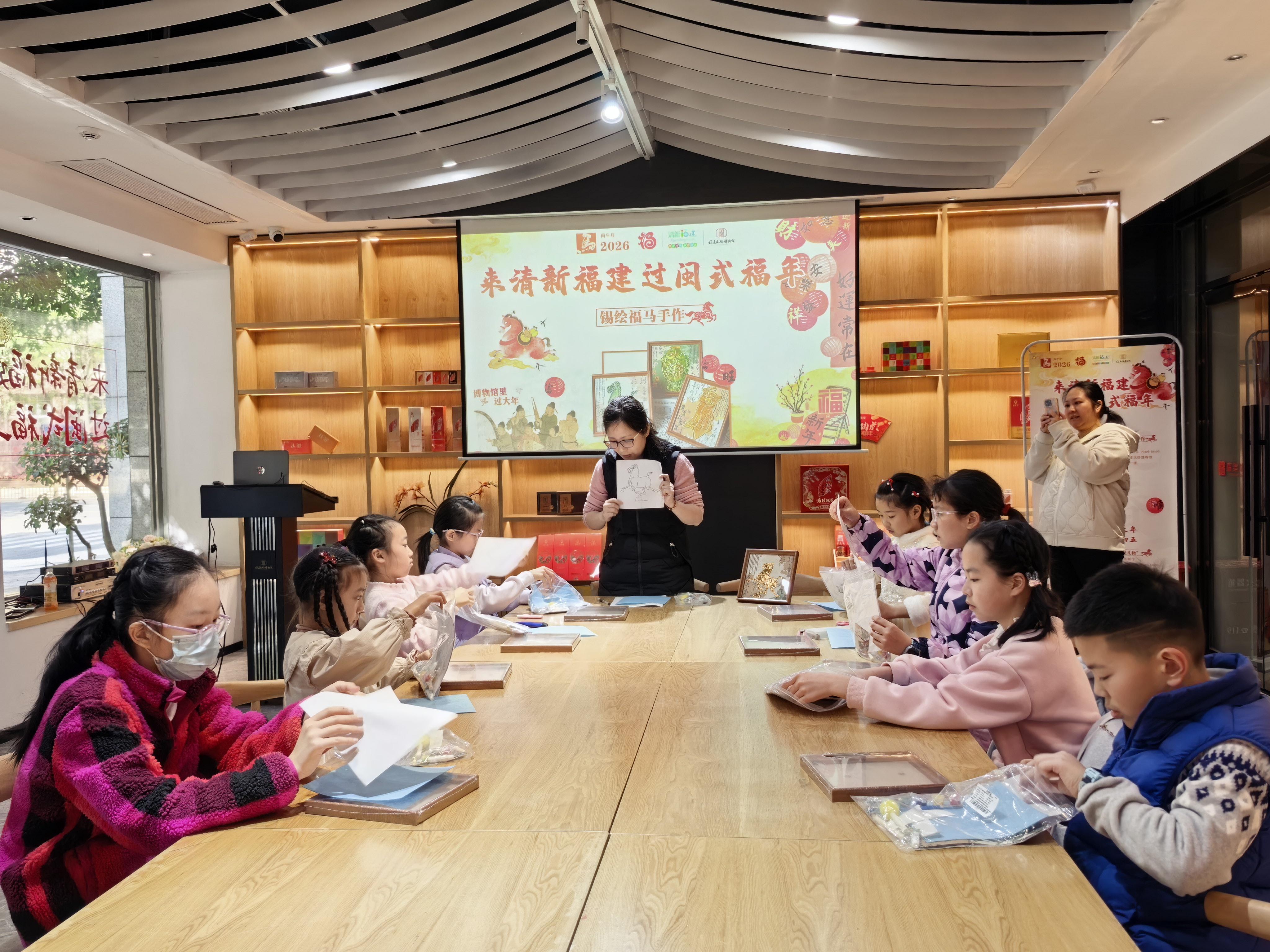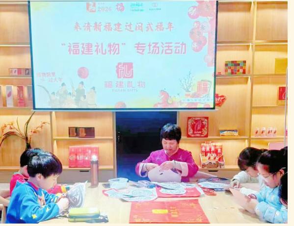 在“福马迎春”集市,“福建礼物”紧扣新春主题,推出德化白瓷、宋锦、大漆等近30款文创产品,以现代审美诠释传统祝福,让闽地文化在新春氛围中焕发新活力。两大市集的特色呈现,是“福建礼物”对闽地文化的多元表达,也为市民游客带来了可逛、可感、可带的新春文化消费选择。 春节期间,“福建礼物”品牌首店同步推出主题手工体验活动。活动现场,在传承人老师的指导下,市民近距离体验传统剪纸的乐趣。活动吸引了众多亲子家庭参与,孩子们亲手剪出“福”字、奔马等吉祥图案;在“锡绘福马”手作活动中,参与者在锡纸上绘制骏马图案,将传统工艺与丙午马年主题巧妙融合,在动手体验中感受新春年味与闽地文化底蕴。
