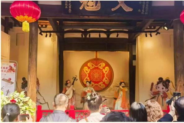 数字赋能 年俗焕新 当千年闽俗文化遇上前沿数字科技,闽式生活便打破了时空的壁垒。花厅内,《闽都盛景》三维情景互动系统生动还原《榕城景物考》中“人烟绣错,舟楫云排”的繁华街市,观众置身其中,耳畔是市井喧闹、眼前是百戏开台。“文博斋”以数字化技术,陈列出六十件馆藏文物,观众可随意点击放大、旋转,近距离欣赏器物细节,聆听文物背后的故事。
