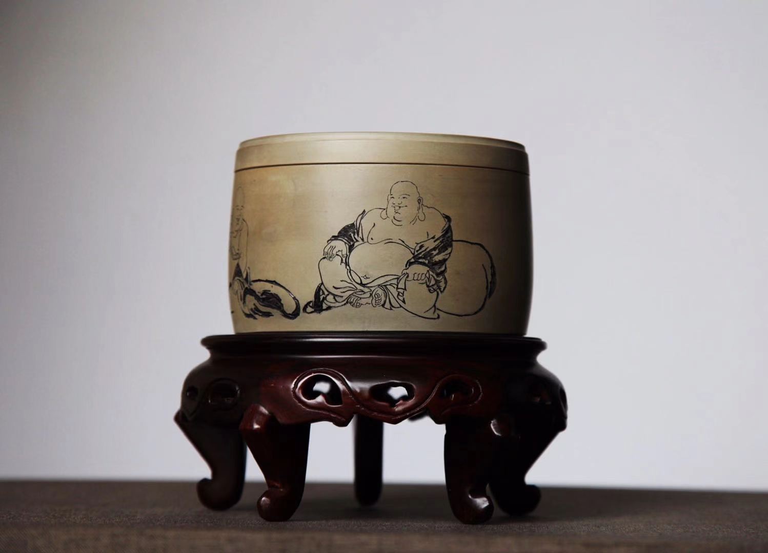 清末民国漆制木胎月牙形描金人物博古壁挂